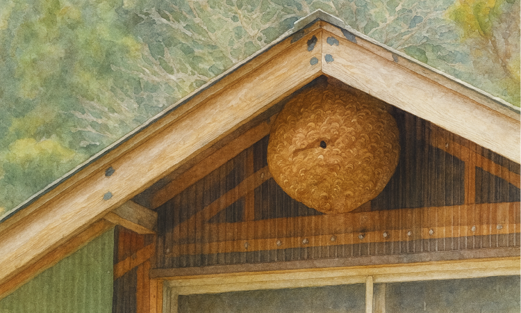 屋根の軒下や庭の木、ベランダの隅などに巣を作り、繁殖期になると攻撃性が高くなります。 巣を見つけても自力で駆除するのは非常に危険なので、専門業者への相談が必須です。
